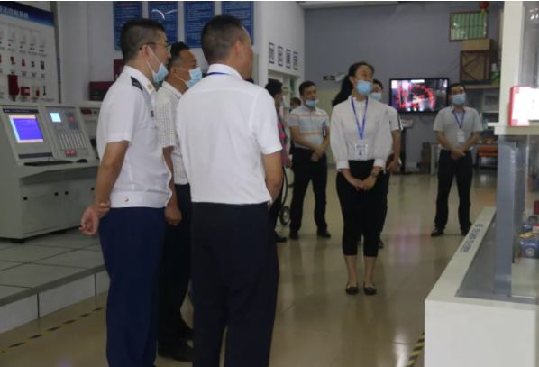 考察組參觀高層建筑消防系統(tǒng)原理教學(xué)模型